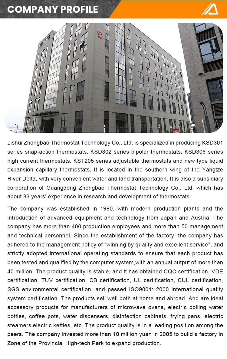A: Our major product is used for temperature control of air conditioners, water dispensers, electric water bottles, electric saw pots, showers, disinfection cabinets, coffee pots, electric steamcookers and other electrical appliances. lt is also suitable for other household appliances, electronic instruments, andelectronic control cabinets. For overheating protection temperature limiting or temperature control.