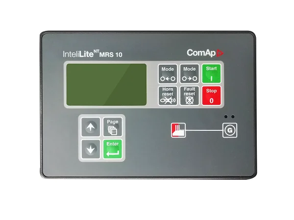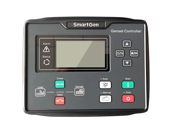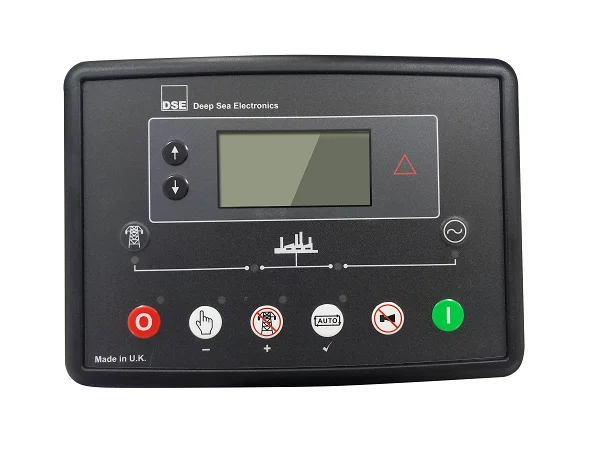 The control module gives digital readouts of: Generator voltage; Output frequency; Engine speed; Battery voltage; Engine hours run. The control module has indicators for failure information: Overspeed/underspeed, Emergency stop Low oil pressure; High water temperature Failure to start Battery charger failure Automatic shutdown occurs under: Low engine oil pressure; High engine water temperature; Overspeed/underspeed; Failure to start after three attempts. | Deepsea Series ComAp SmartGen |