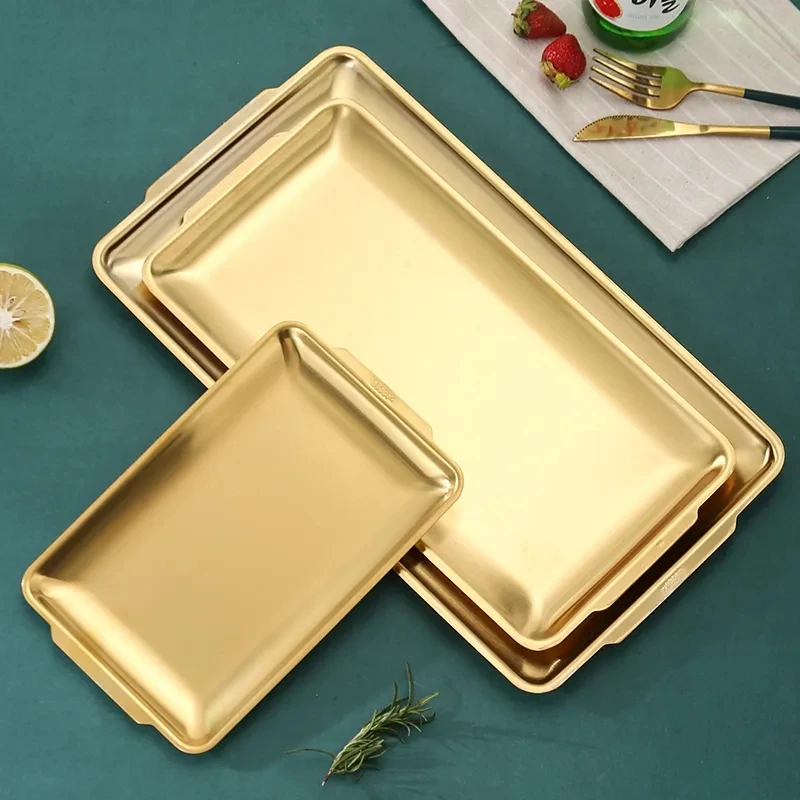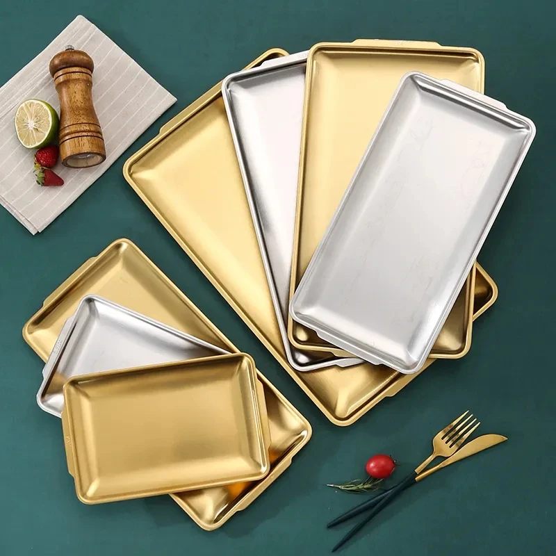 Wholesale Korean Style Reusable Stainless Steel Tableware BBQ Plates Dishes 304 SUS Rectangular Serving Tray