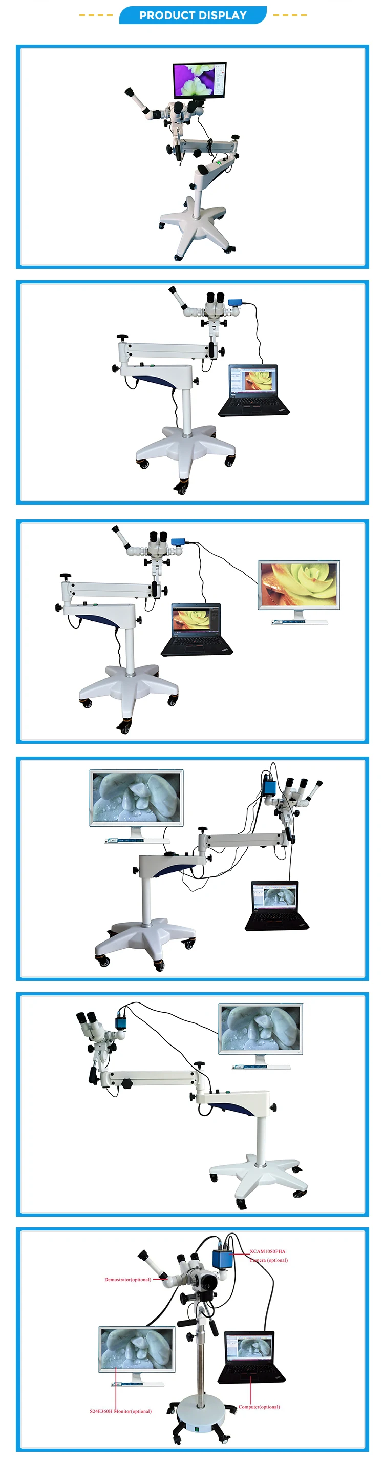 Optional accessories | Demonstrator, Camera (U3CMOS03100KPA, XCAM1080PHA, XCAM1080P2MPA, XCAM1080PHD, WUCAM0720PA, FHD2100, HD200), SLR camera adapter, Monitor (S24R352FHC, S24F350FHC), Objective (F=230mm & F=280mm) | |||