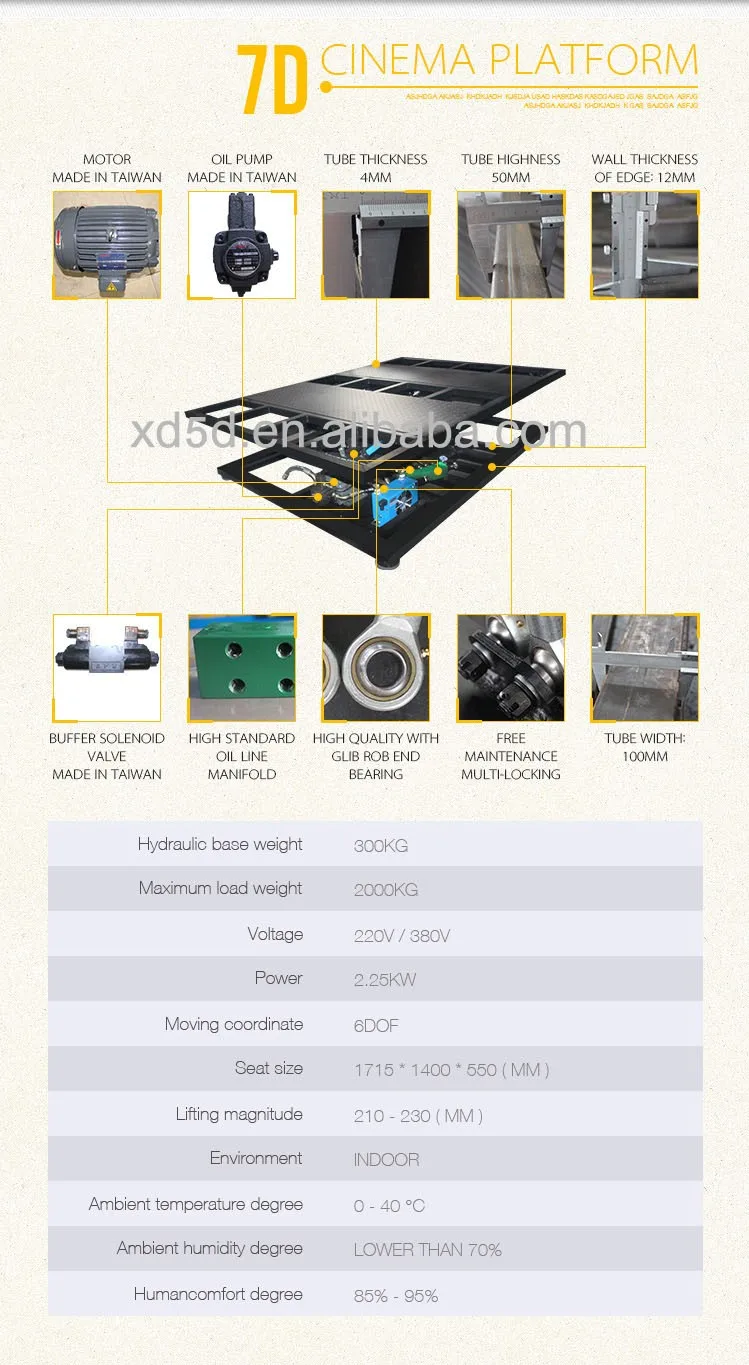 Seat system:since it is developed with 6DOF design, it can provide a dynamic effect with 12 directions, 36 combination and 72 motions.