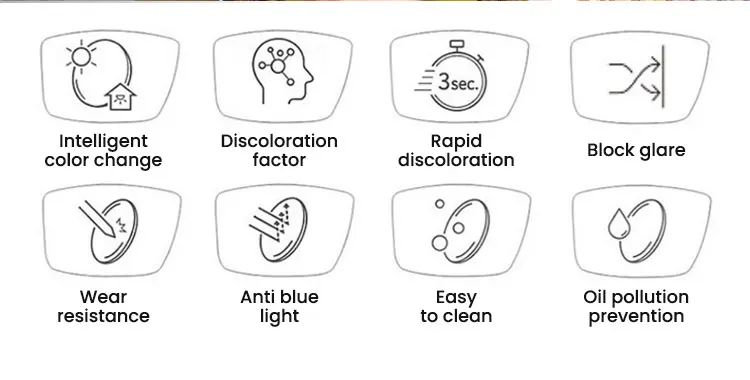 We produce all kinds of photochromic lenses, finished and semi-finished lenses with Index 1.49, 1.56, 1.60, 1.67 in function with blue cut, in design with single vision bifocal and progressive lens and with color grey/brown/blue/ purple/ pink/green.