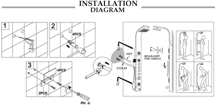BS-6827 baie dus robinet high quality shower set classic style ABS jet massage pause spray stainless steel shower panel