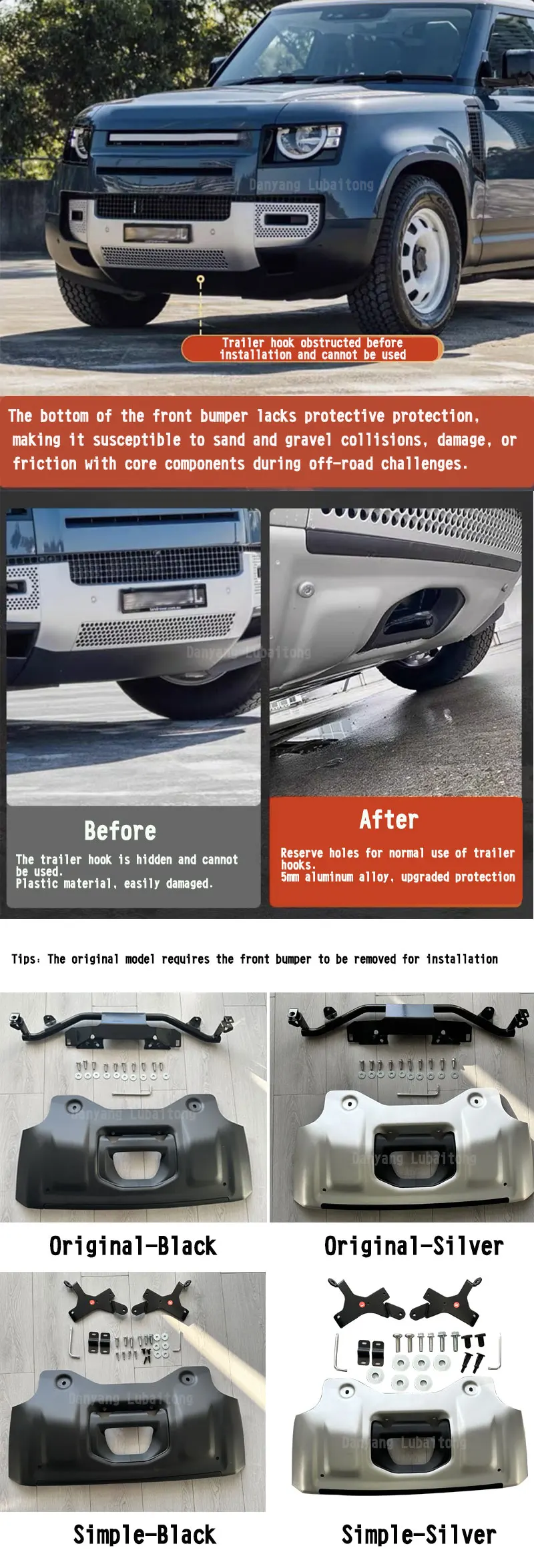 High Quality Black Original Version Sand Flaps Front Trailer Protection Flaps Front Bumper Lower Guards For Land Rover Defender
