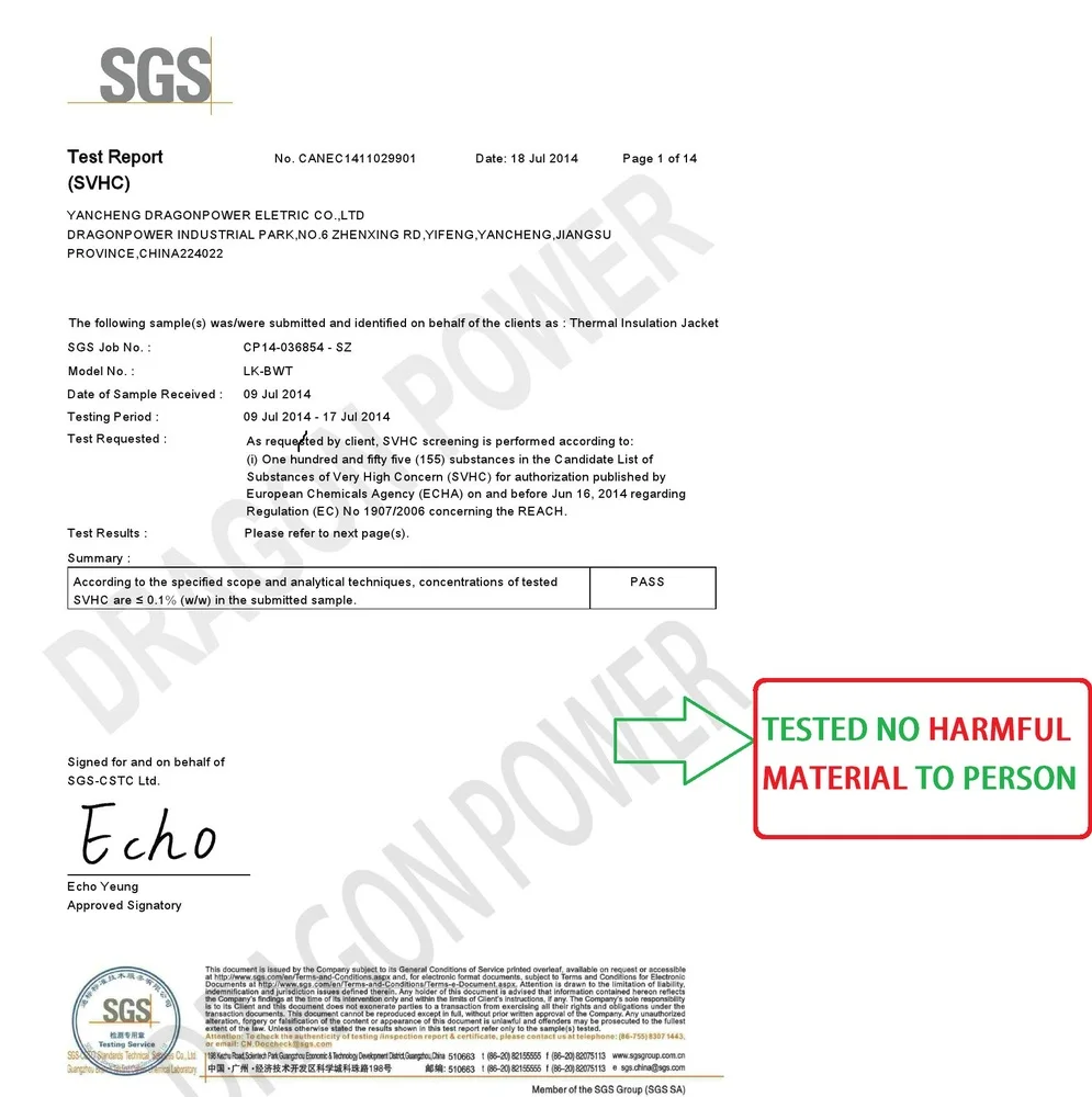 DragonPower had passed ISO9001 and CE certificate. It applies strict test and control over every single part of the products as well as every processing step, ensuring that our products have longer lifetime, better insulation, more even heating and longer thermal inertia.