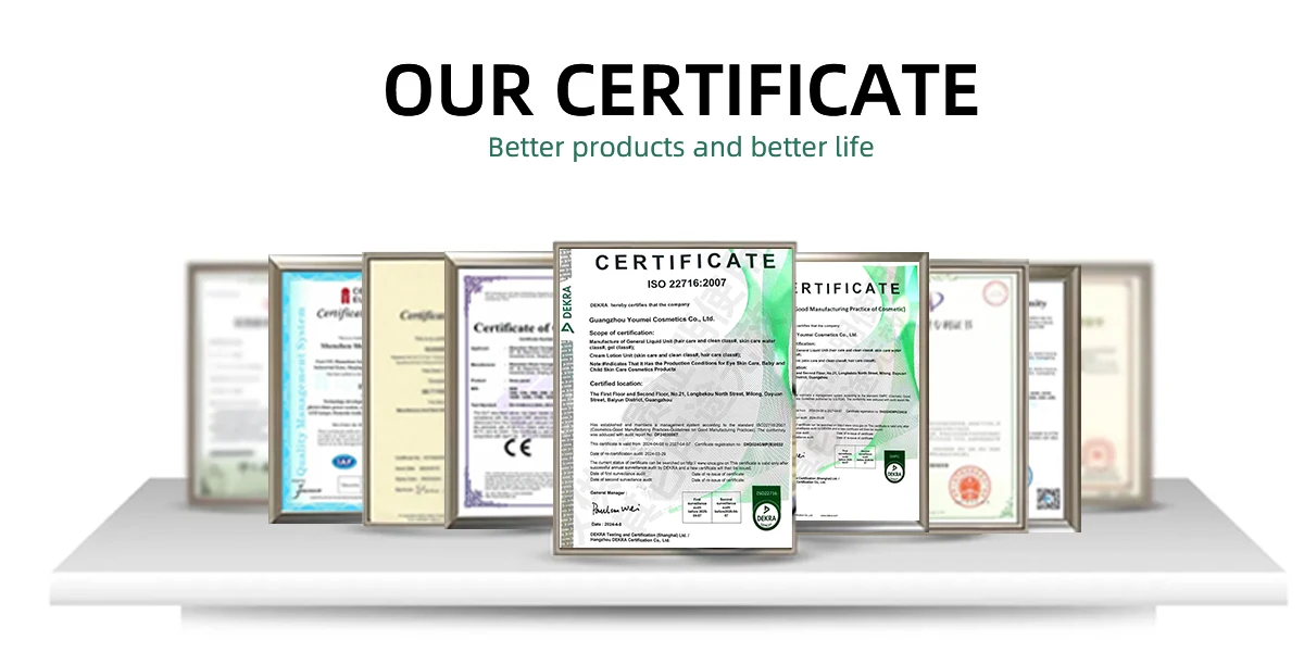 Certification | Factory through the GMP, GMPC, ISO9001, ISO22716, TUV, SGS certification. product passed MSDS test report ,And the COA report |