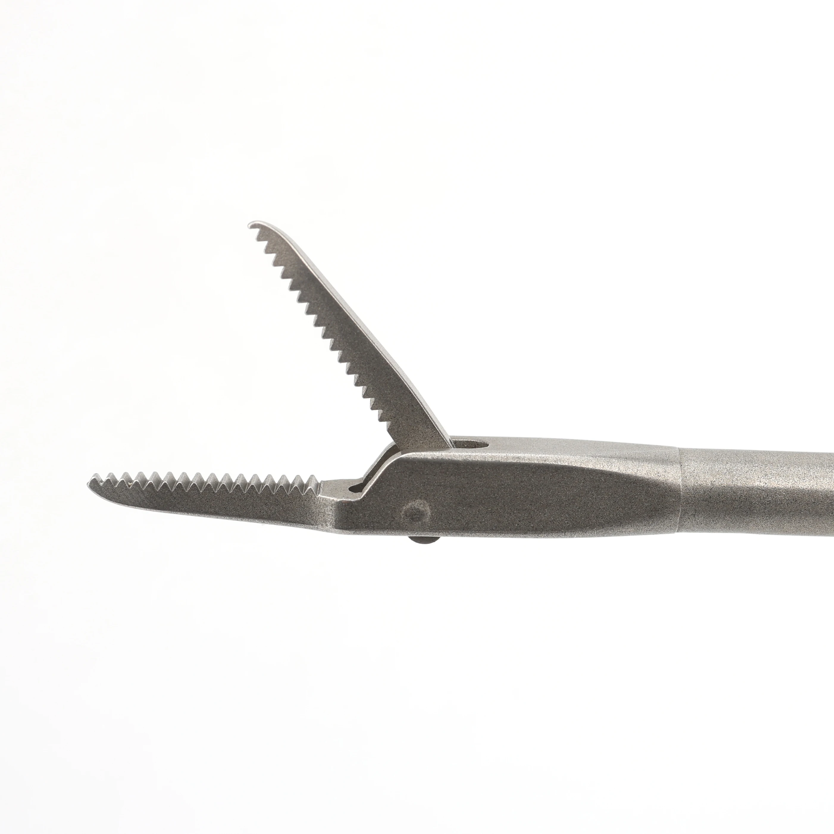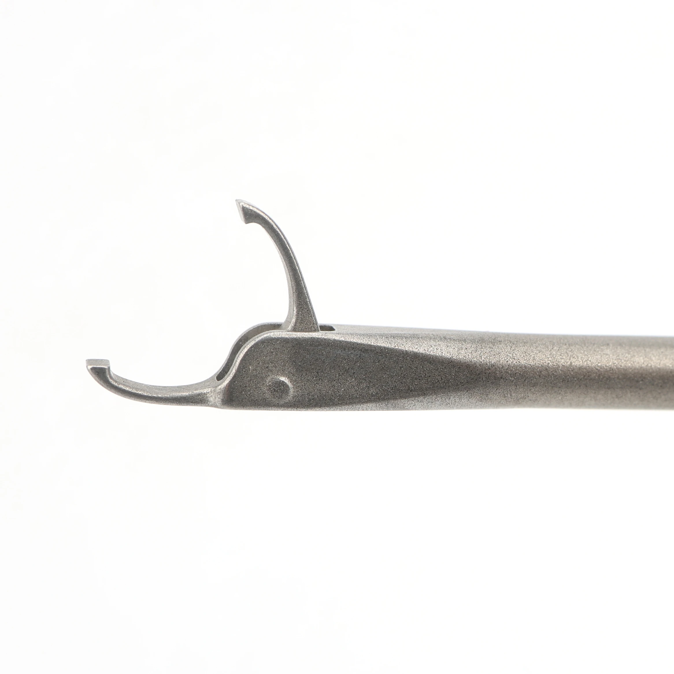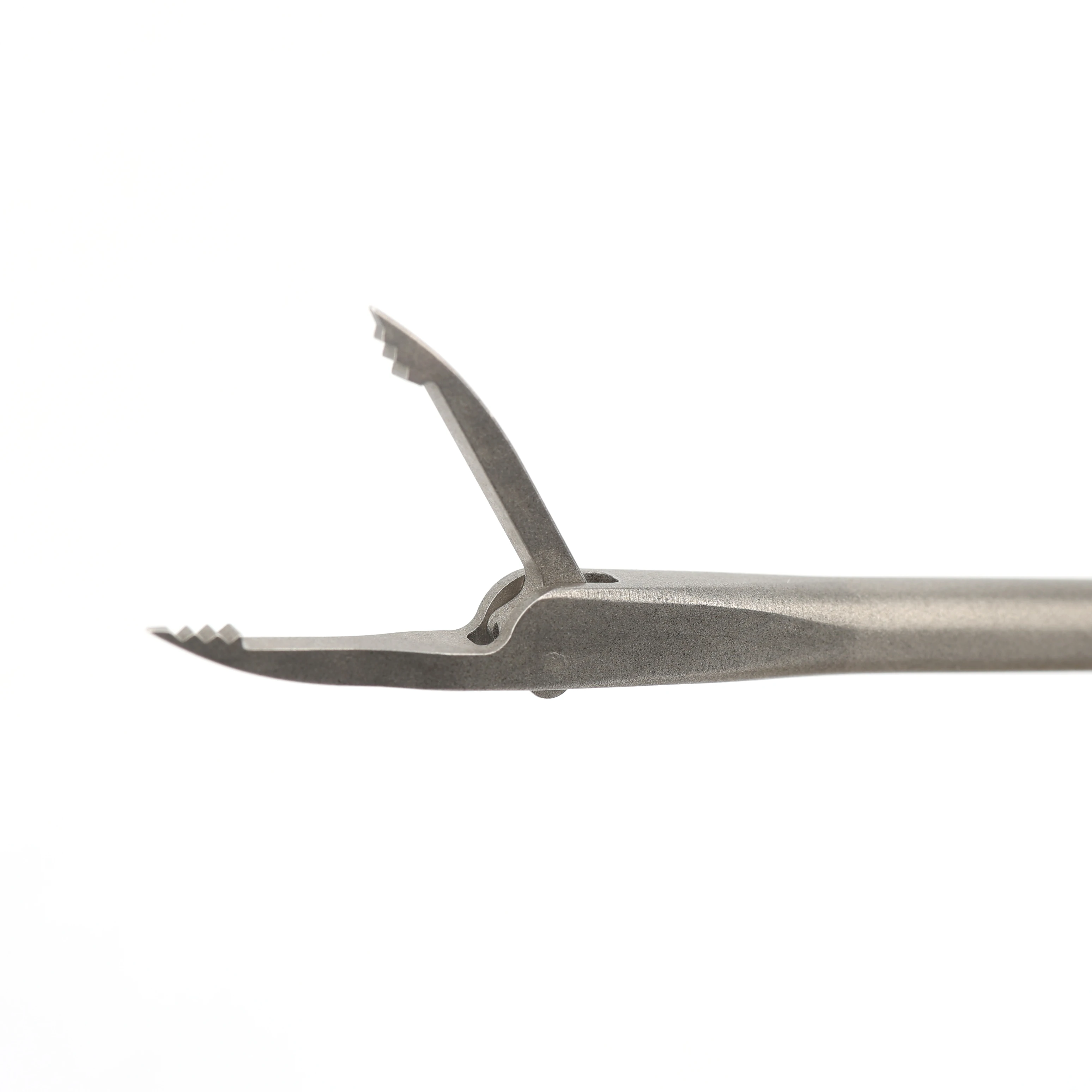 With the uniquely designed jaws of the King Fisher grasper, surgeons are able to perform multiple tasks during arthroscopic surgery with one instrument. The King Fisher grasper retriever is the optimal tool for arthroscopic tissue grasping/reduction, foreign body removal, and suture retrieval/management. The distal serrated tip of the jaws function as a tissue and suture grasper while the proximal section of the jaws facilitate slide-through suture retrieving.