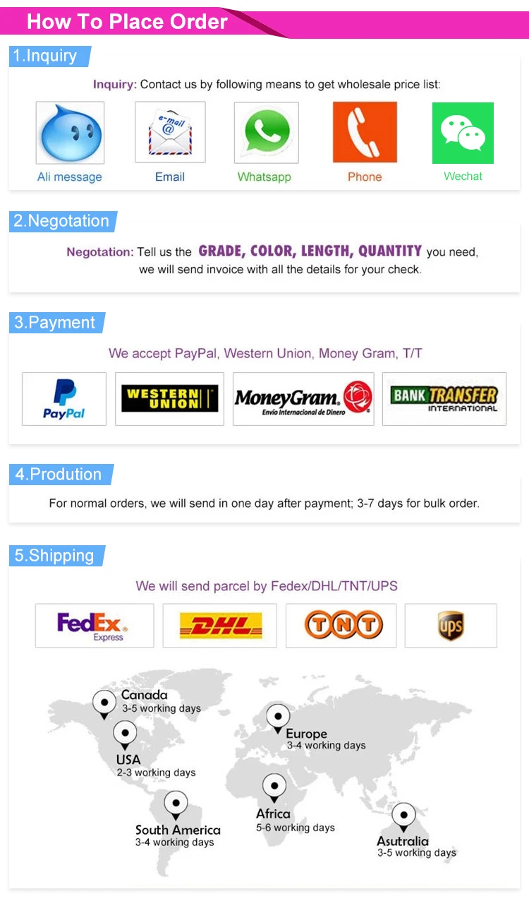 A:Stock items will be shipped 1~2days after payment received.Bulk order will take about 7~18days for production.