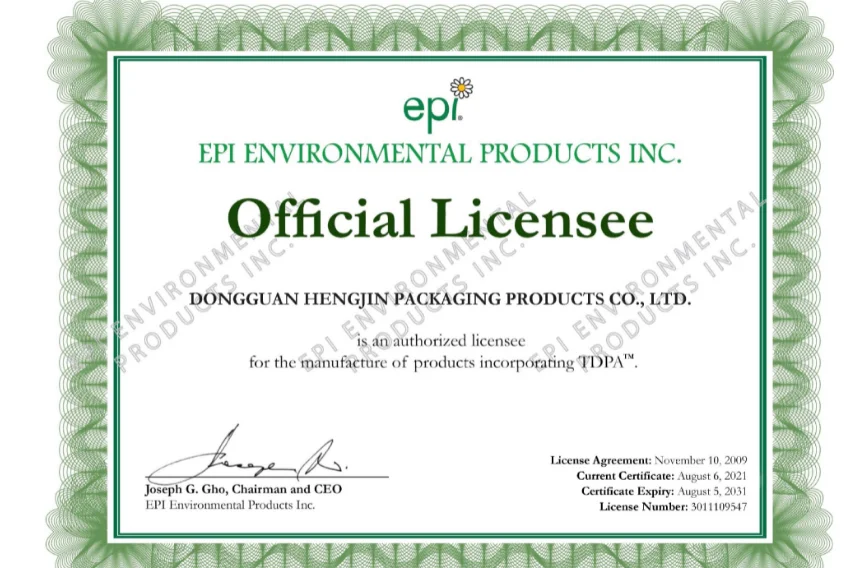 Material (Different Option) | HDPE+EPI/cornstarch+PLA+PBAT | ||||||