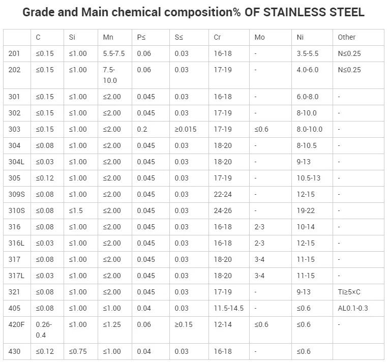 Grade | 304,316,410,316L,316Ti,321,410S,430,904L etc. | ||||||