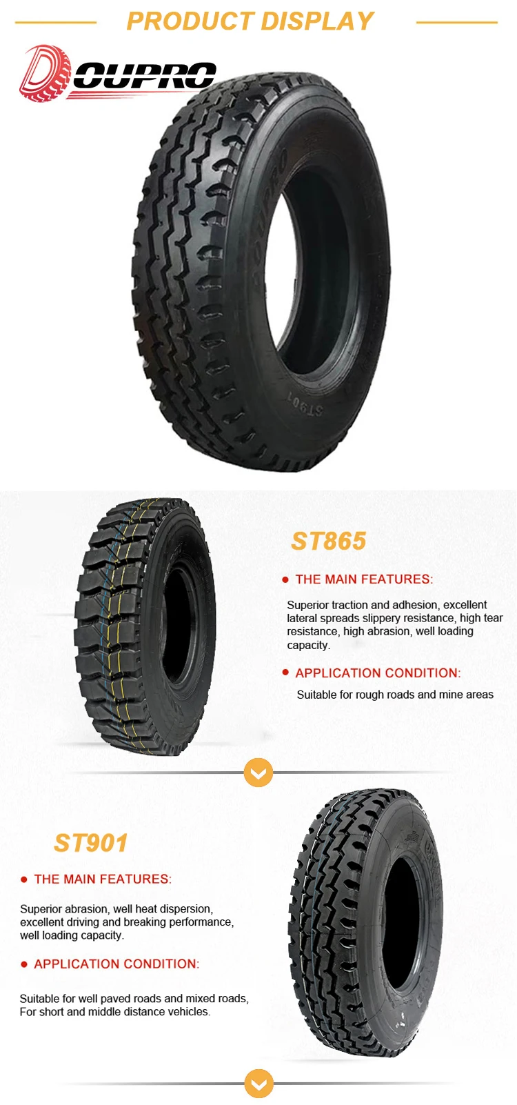 Doupro tyres are famous in America and Africa markets with the right design for the weather, road and loads.Grade A quality new truck tires with high quality, reasonable cheap price and fast delivery, your best economy truck tyres in China, OEM truck tire