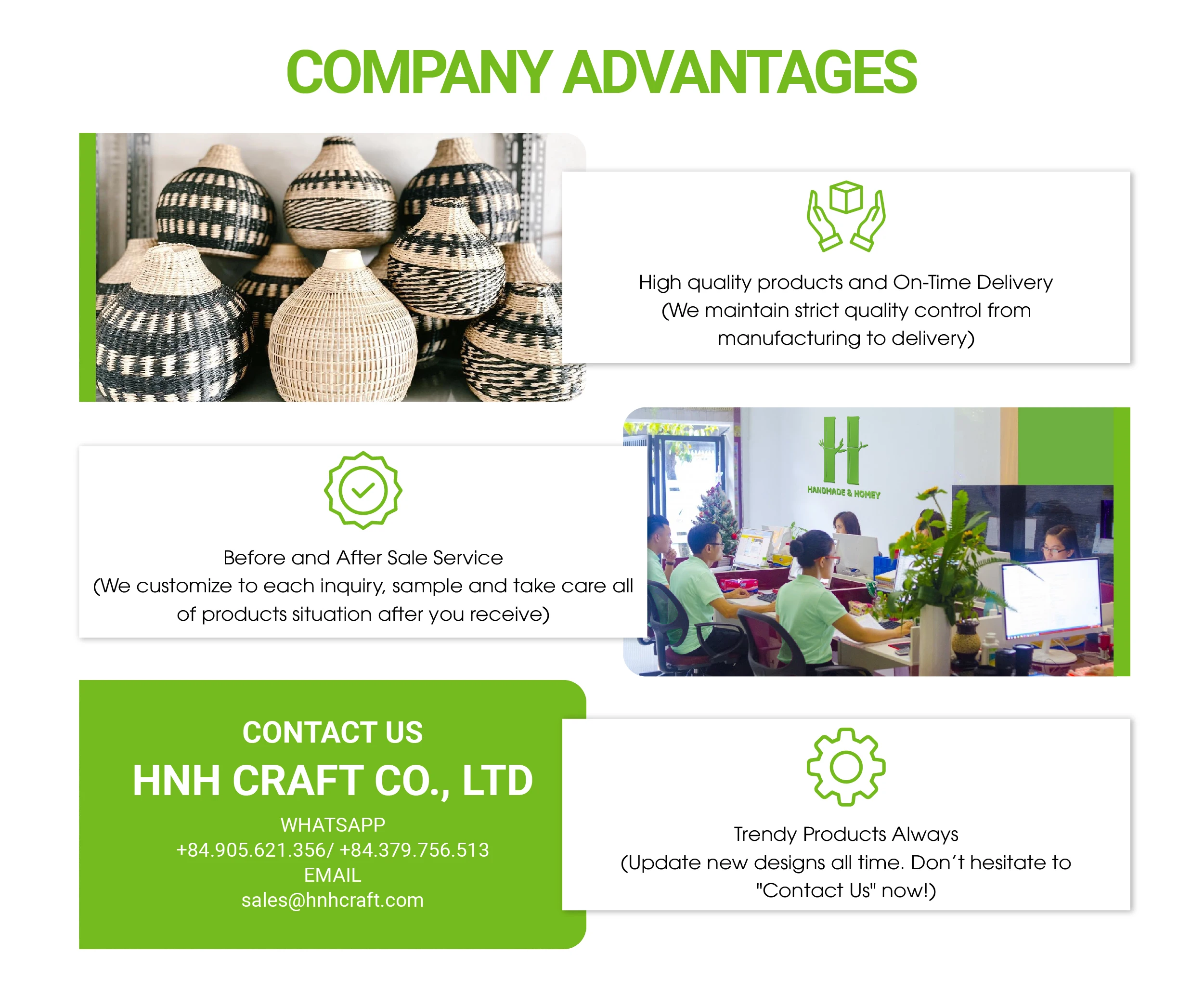4. Why should you buy from us not from other suppliers?No old ideas, slow service, and poor quality, we believe in keeping things trendy, fast, and excellent. Our team knows how important it is to get the results needed to build your business. HNH Craft offers an unequaled breadth of service in OEM