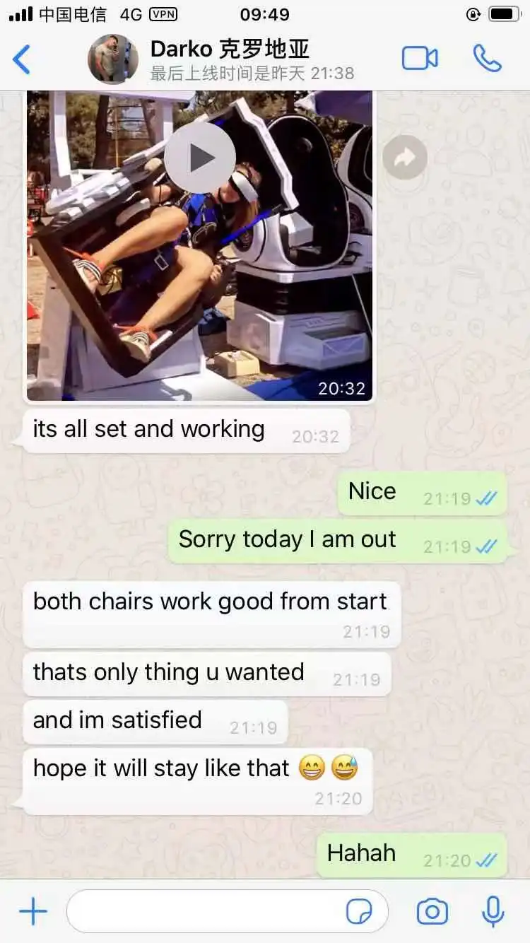 A:We mainly produce VR simulator, such as 3 screens vr car racing simulator, and 360 VR Simulator, eggs vr cinema, vr cinema , htc game, rotation simulator....
