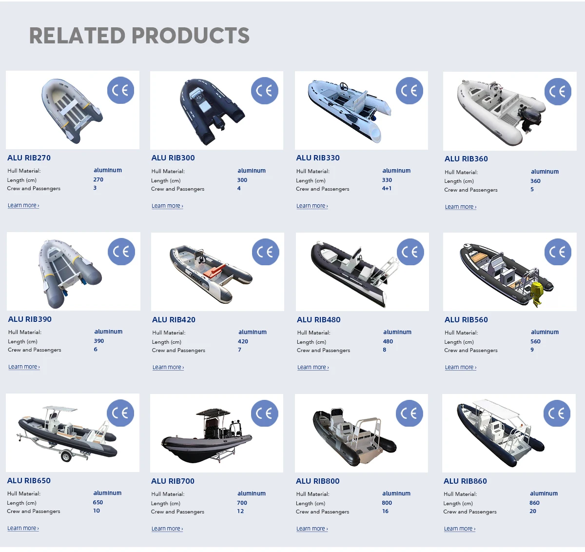 1.ALUMINIM SEMI-RIGID BOAT 2. FIBERGLASS RIB BOAT 3.ZODIAC INFLATABLE BOAT 4.MORE