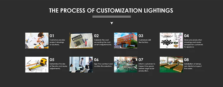 In recent years, with the gradual enrichment of engineering experience, we do lighting solutions for many customers,except for decorative lamps and commercial illumination but also assist in solving customers' outdoor lighting and architectural lighting needs, we integrate high-quality supply chain, the company team has two commercial lighting and outdoor lighting experts with more than ten years of engineering experiences, we are able to offer our clients comprehensive support and guidance throughout each stage of their lighting project.