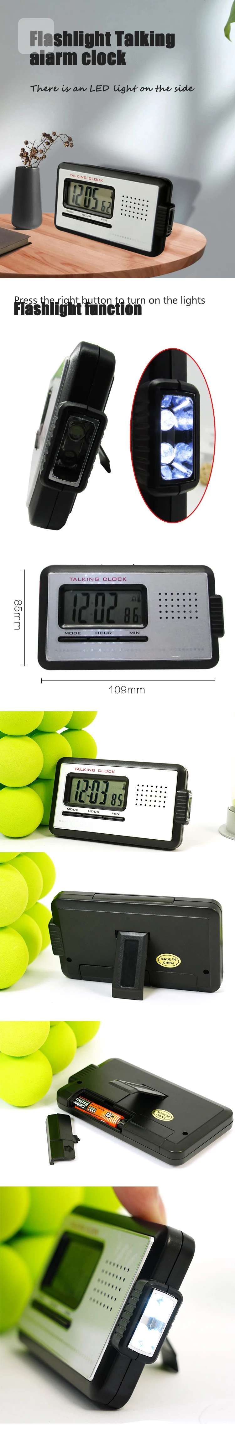 Competitive Factory Price LCD Talking Desk Clock Alarm Digital Clock Flashlight Talking Alarm Clock For Home And Office