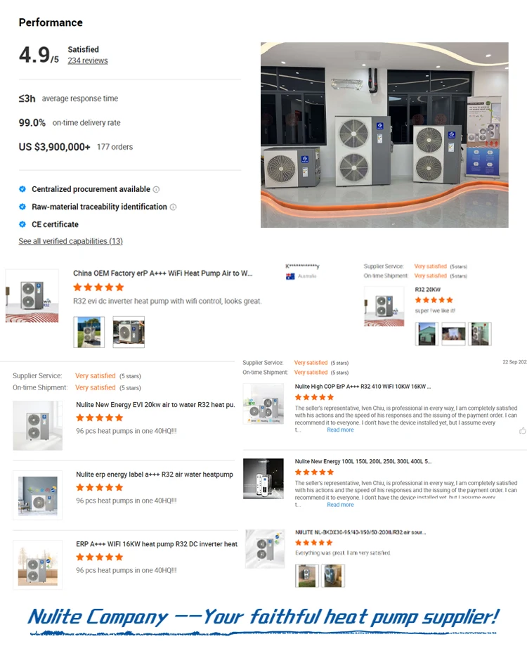 Guangzhou NuLite New Energy Group, located in Guangzhou City, is the China-Singapore Joint Venture established in 2003, with three main modern manufacturing factories covering 580,000 square meters, 1,200,000 units of production ability, and over 1,500 employees.NuLite New Energy, as one of the largest air source heat pump manufacturers in China, owns three famous brands, while NuLite brand is fully committed to exporting services to overseas markets.