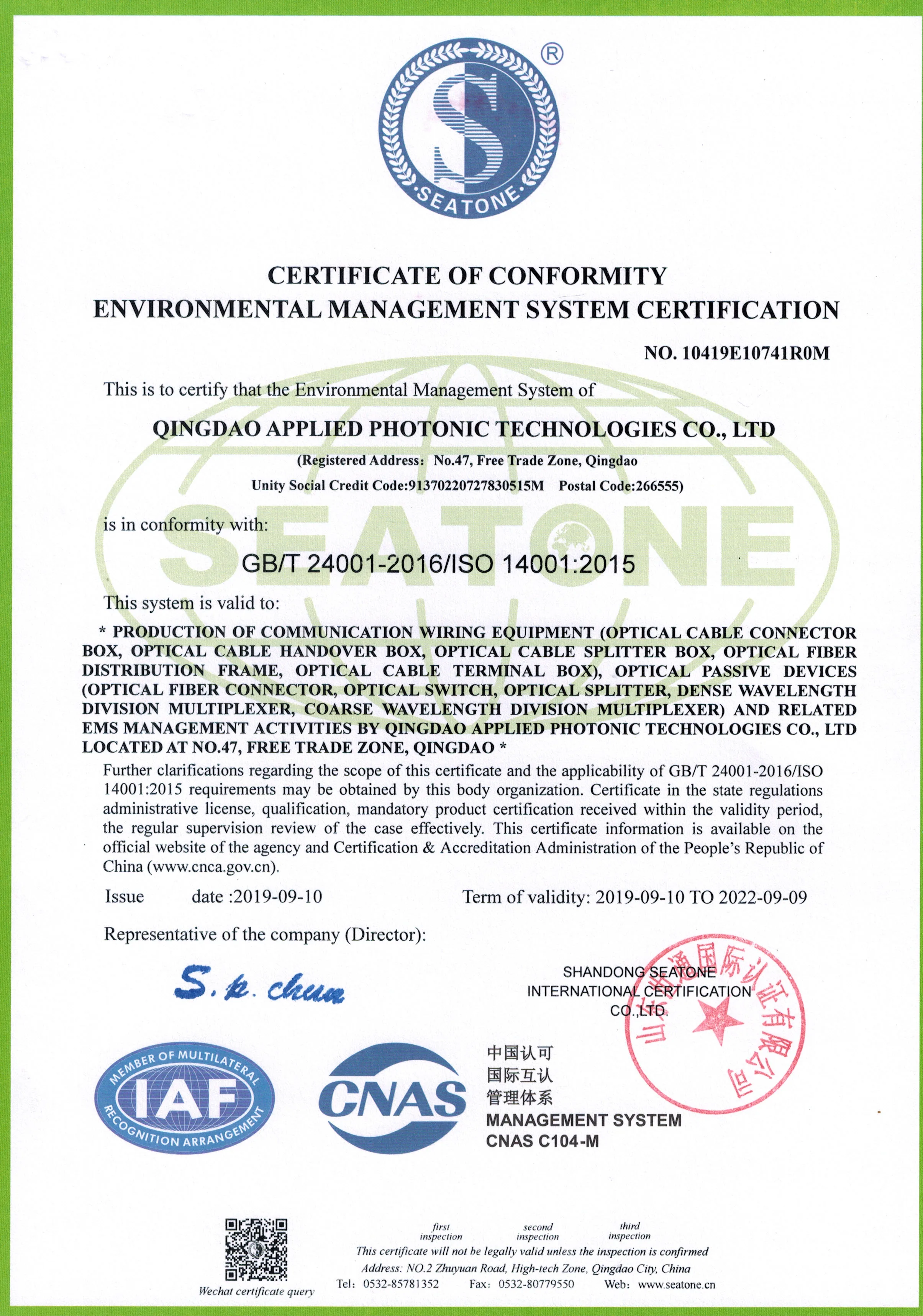Operating Temperature | -10 -- +50 °C, < 90%RH | ||||||||