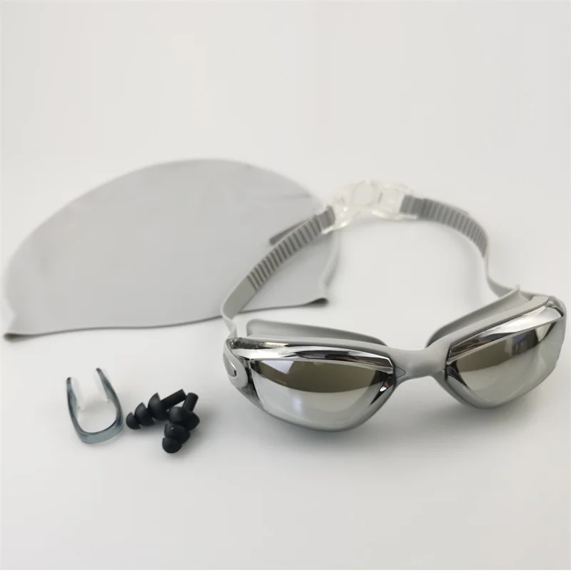 Swimming 4-piece set Waterproof and anti-fog plated high definition swimming glasses men and women swimming goggles wholesale