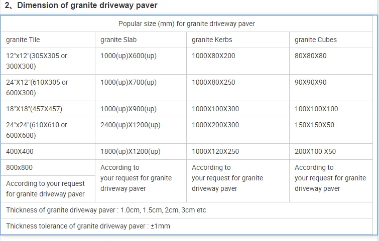 1、Description of granite driveway paver