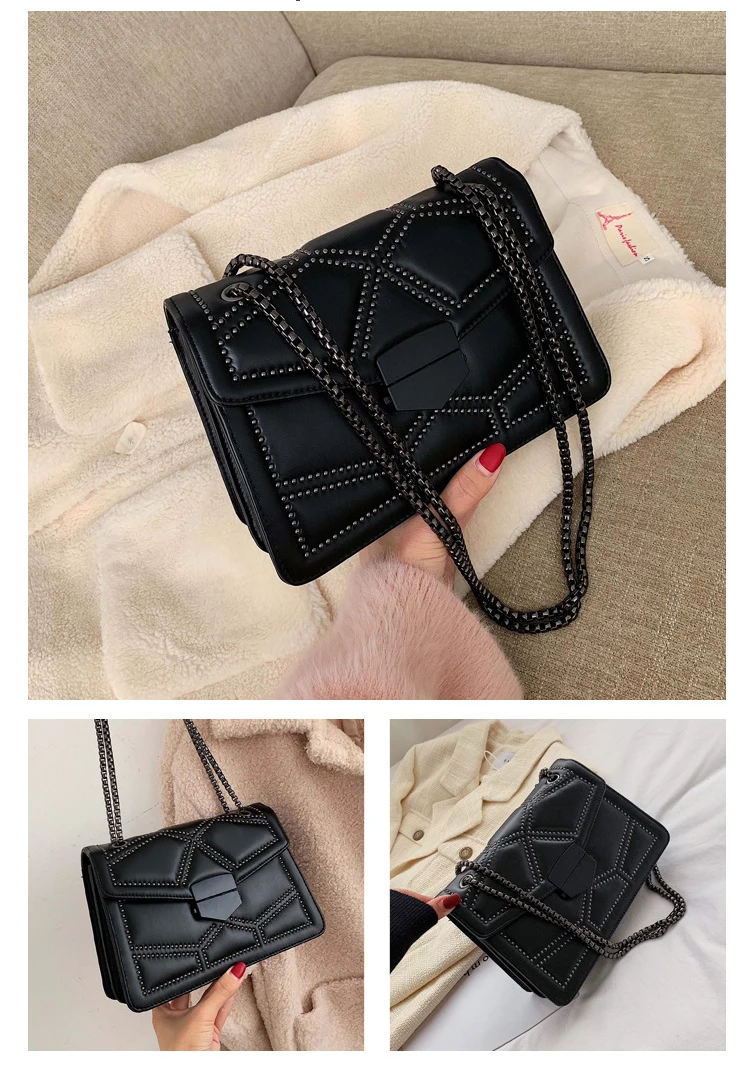 Wholesale Chain Bag PU Fashion Senior Sense Riveted Ladies Crossbody Shoulder Bags women Bags