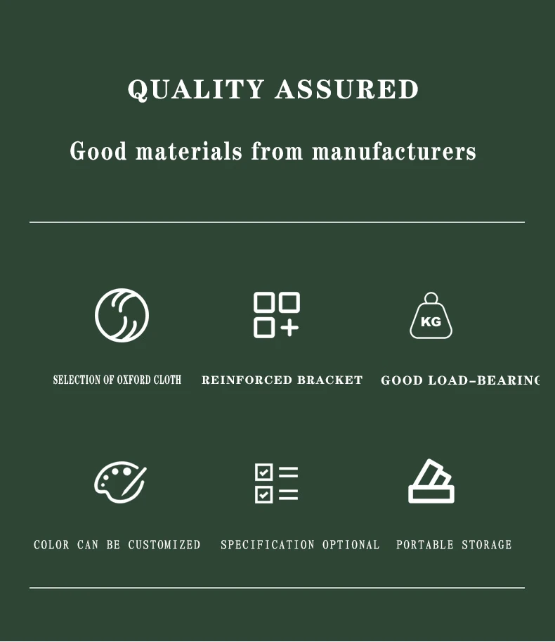 Outer leg(mm)30(H)x30(W) 0.4-0.7( thickness)FabricPolyester, Oxford, Nylon,PVC