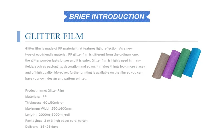 Type: glitter film, self adhesive or thermal lamination