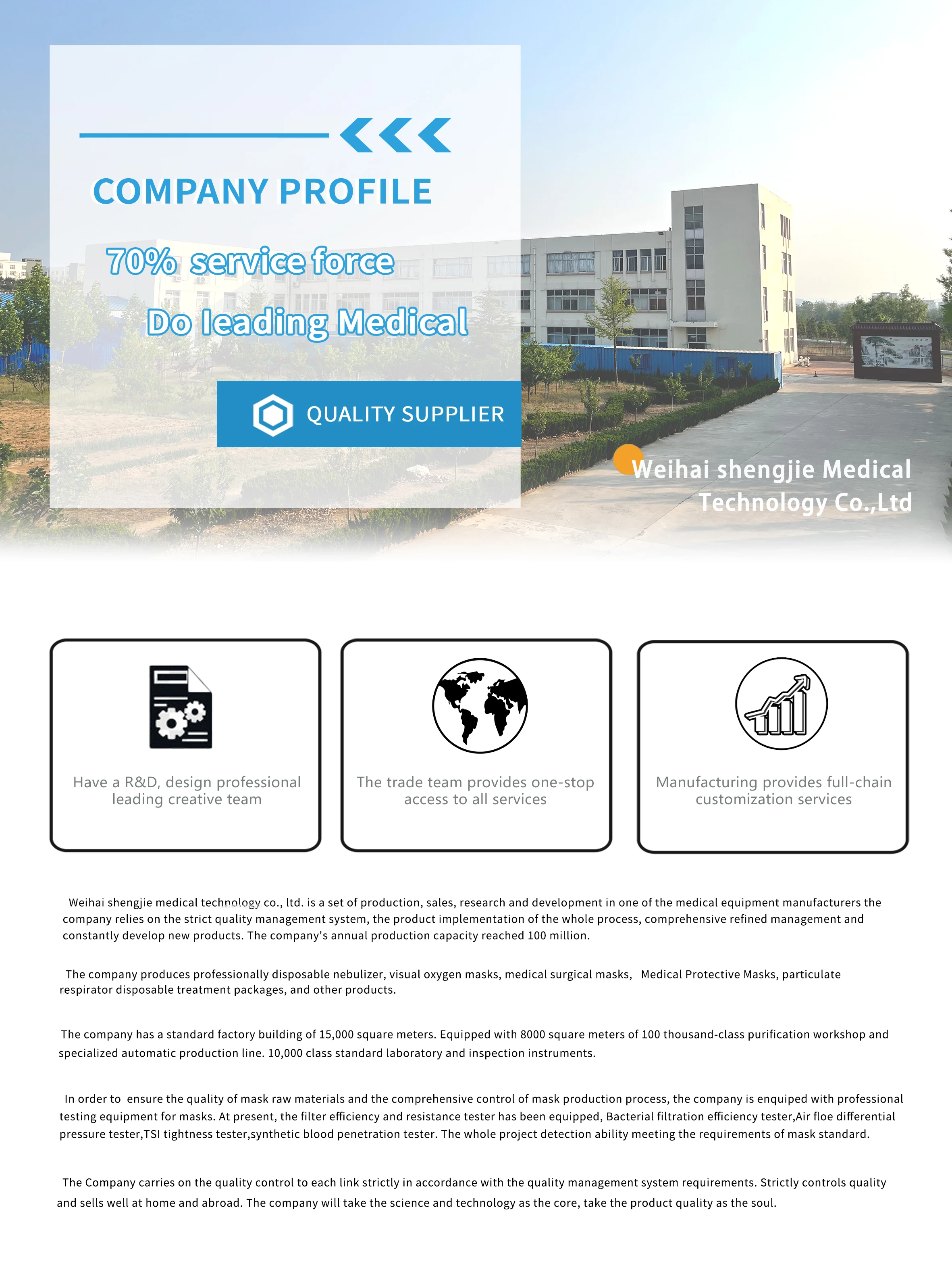 Weihai Shengjie Medical Technology Co., Ltd. is a medical device manufacturer integrating R & D, production and marketing. The