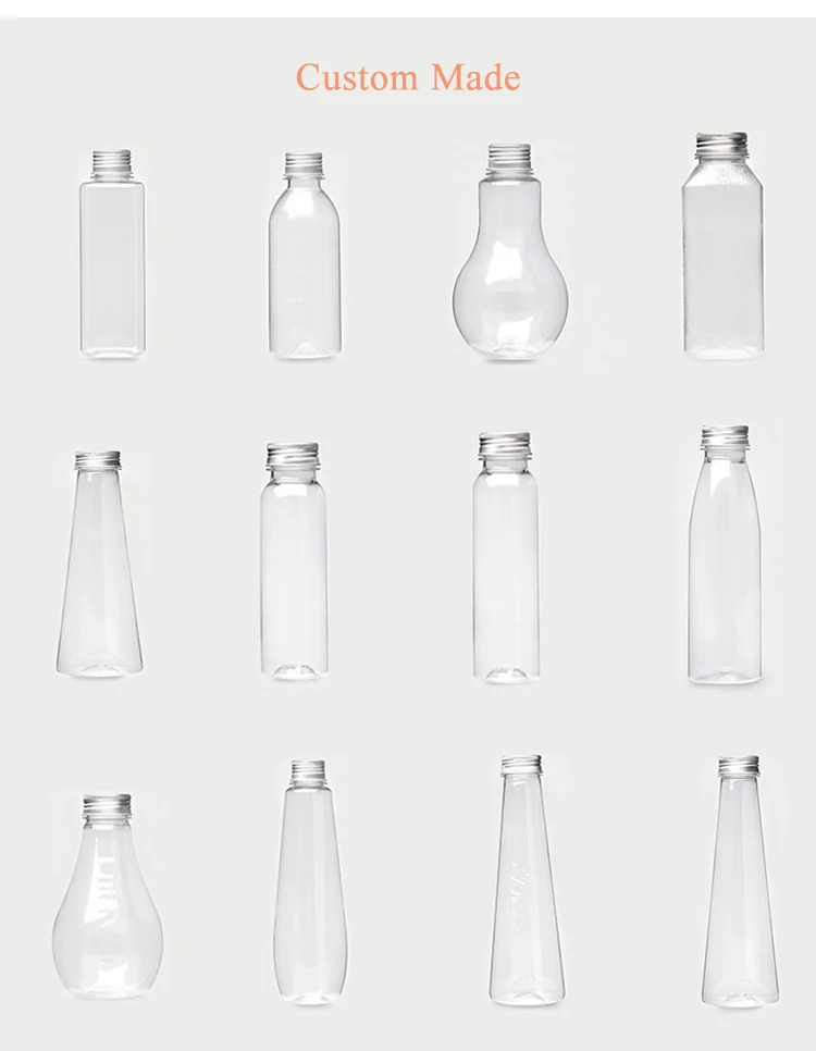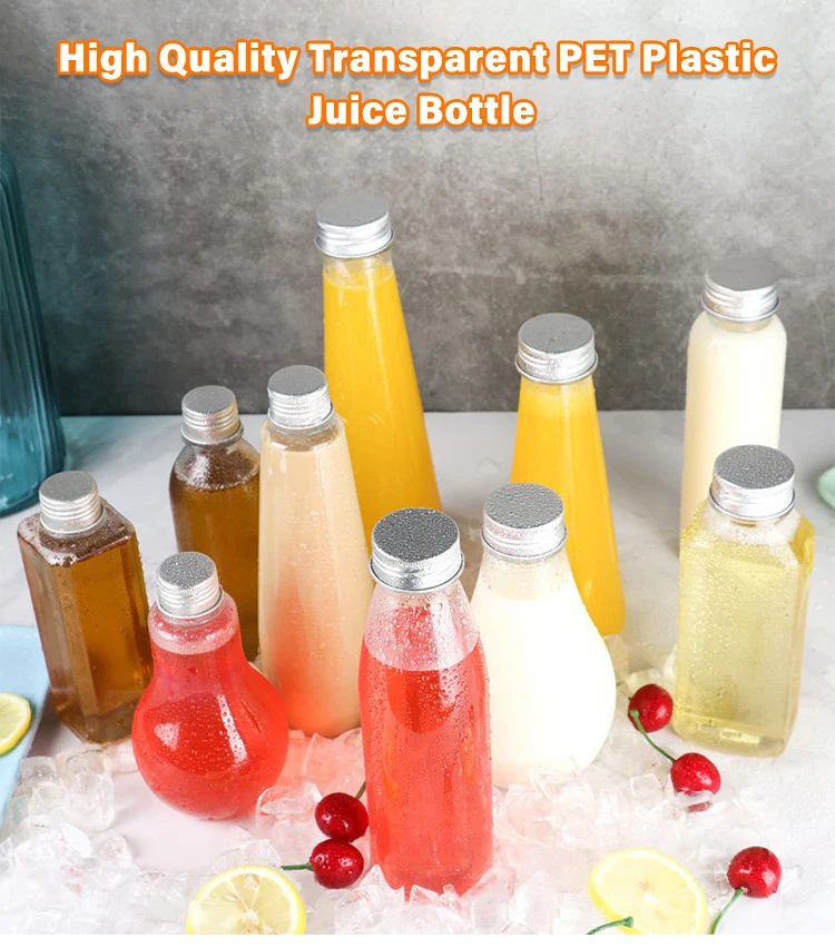 200/300/500ml Customized Transparent Square Round Shape Plastic Pet Juice Beverage Bottle With Cap