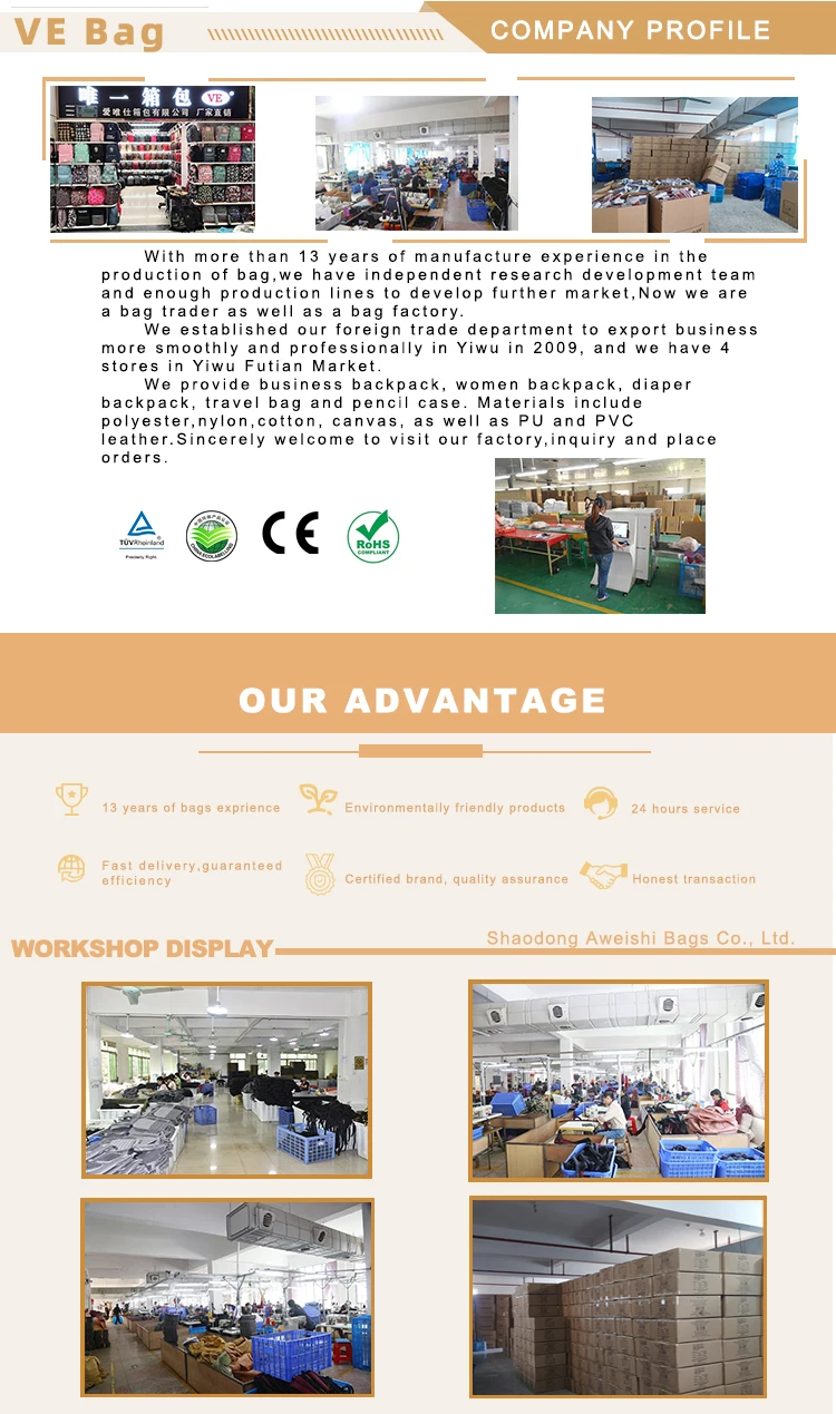 14 YEARS’ EXPERIENCE Travel bag,laptop bag, , computer backpack, diaper bag, lunch bag, school bag, fashion small backpack, cosmetic bag, pencil case, etc.