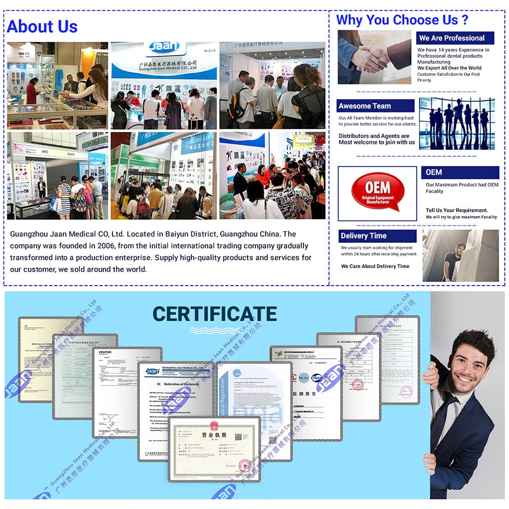 We are Guangzhou Jaan Medical CO.,Ltd is a Leader Manufacturer for Some of Dental Products in China. We have been recognized in domestic market and abroad for its extraordinary customer service,high quality products and competitive prices.