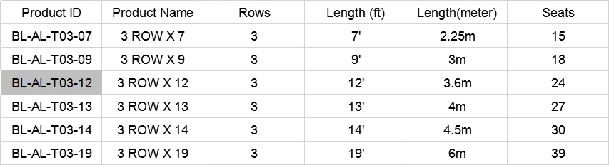 Bleacher Size | 3ROWS X 12' L (4meter) |