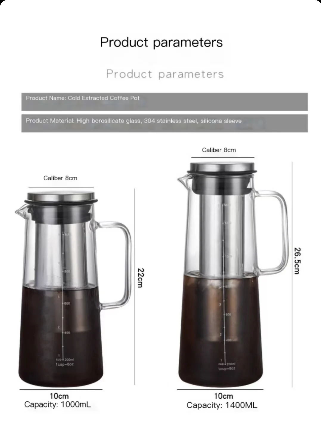 Product name | Cold Brew Iced Coffee Maker Tea Infuser with Spout Brewing Glass with Removable Stainless Steel |
