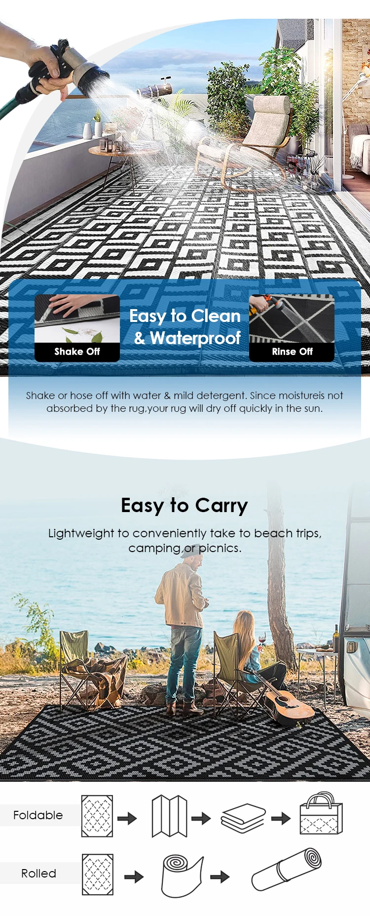 Reversible Plastic Straw Rug, Modern area Carpet Large Floor Mat for Outdoors, RV, Patio, Backyard, Deck, Picnic use