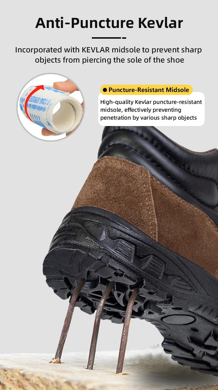 FH1961 Safety Shoes steel toe shoes Anti Piercing and Water Resistant Black work boots for men