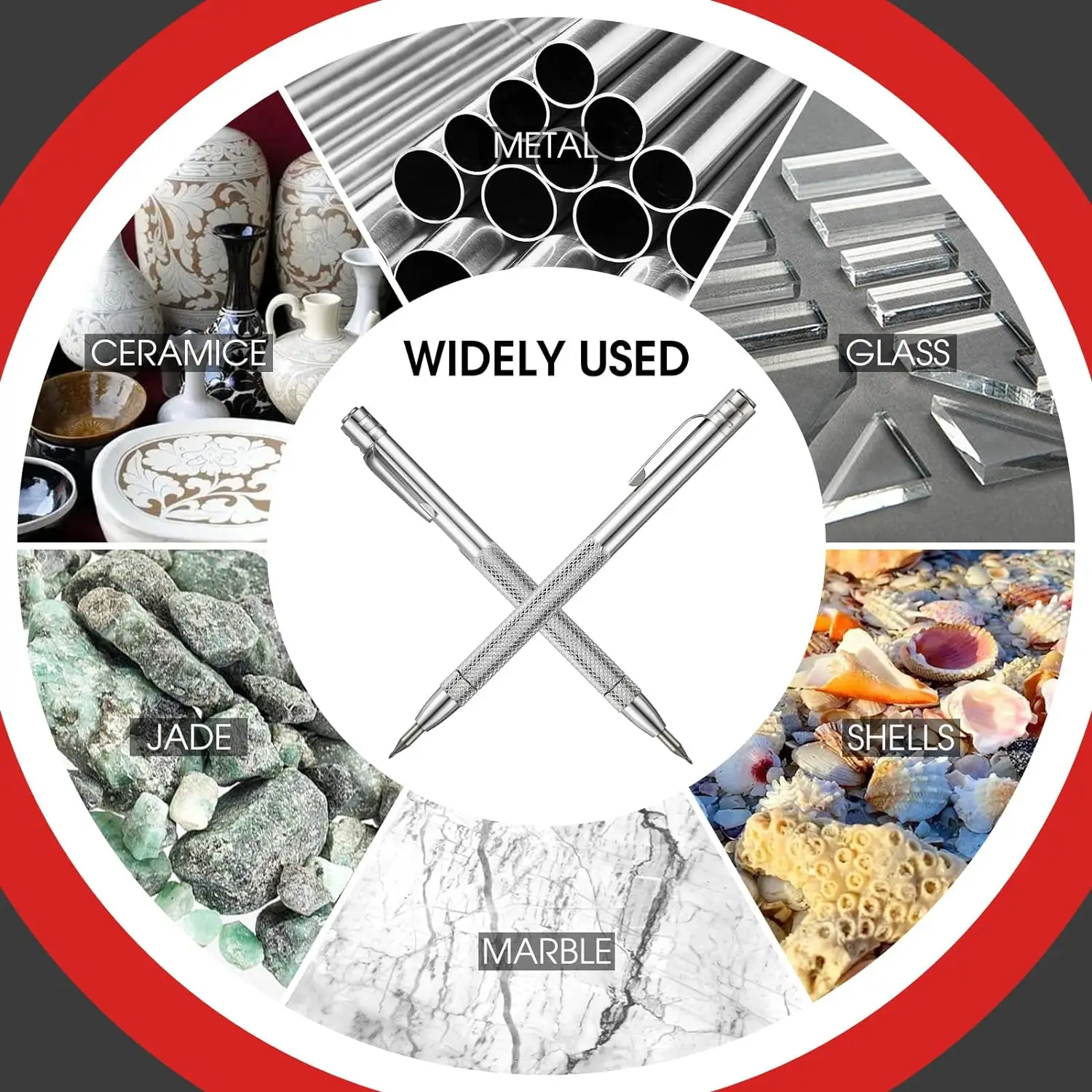 The convenient pocket-clip allows you to always keep the etching carve tool handy, store it as your ball pens, and it doesn't take up many space. Each engraving pen and replacement tip comes with with a protective chuck for tungsten carbide point when not in use. Keep it sharp and keep users safer.