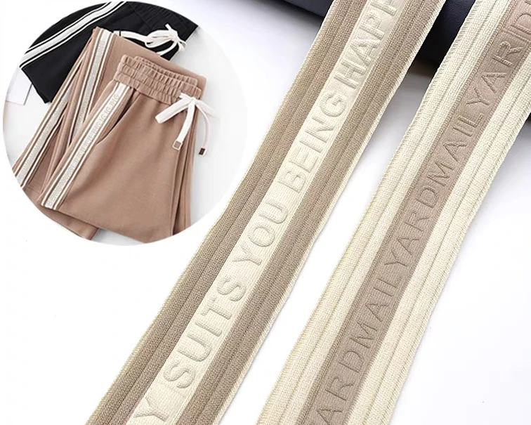 2024 New Style 4CM Embossed Debossed Knit Stripe Emboss Engrave Webbing Custom Logo Tape For Pant Sweatpants Side