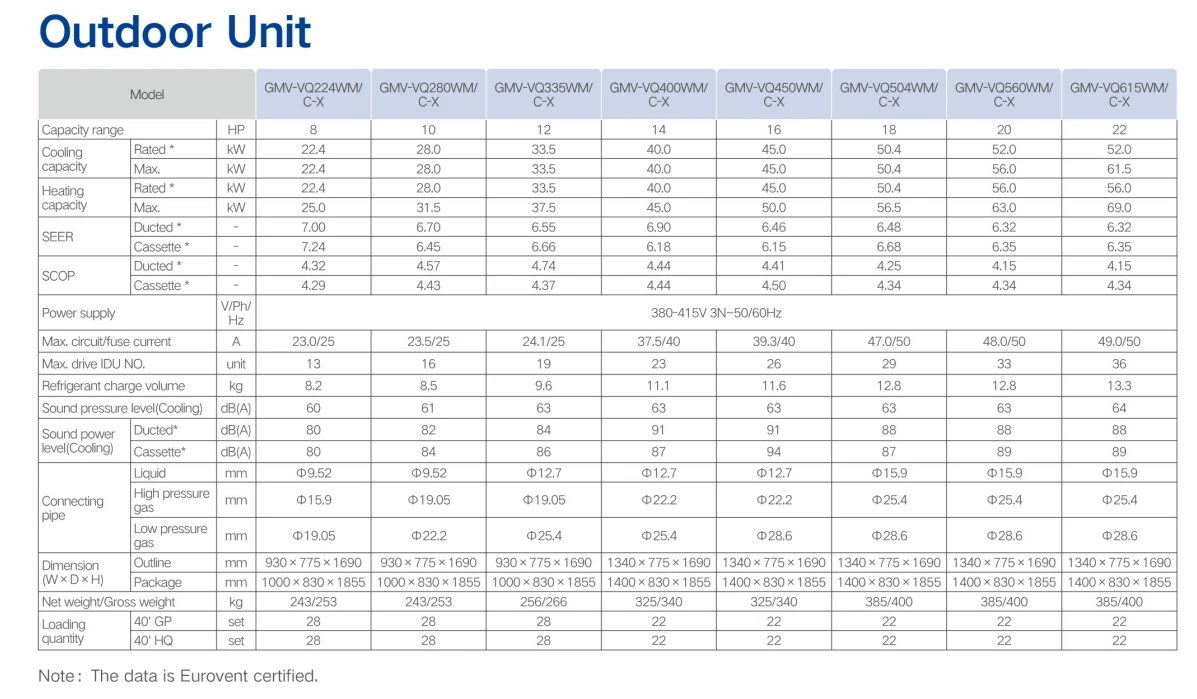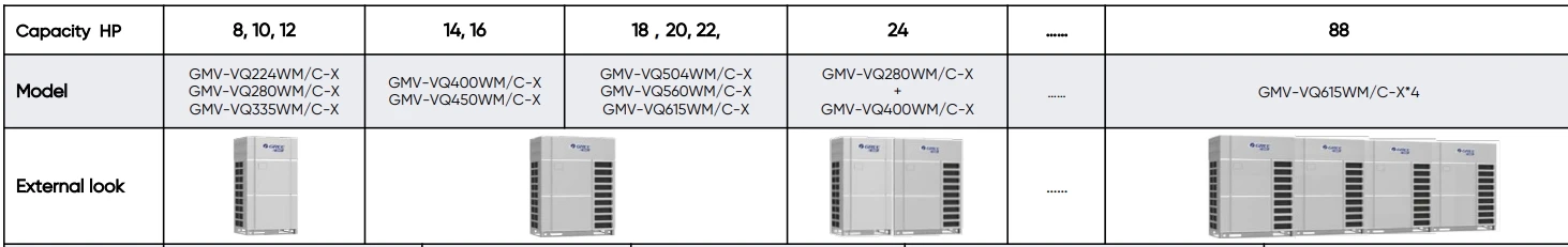 GMV6 HR with a wide range of 22.4kW~246kW can realize “cooling, heating, water heating” at the same time, which provides comprehensive solution for the multiple demands of customer for air conditioning, DHW and floor heating. The units adopts multiple leading technologies such as All new high efficiency enthalpy adding system, CAN+ communication technology, Energy saving technology and Intelligent Control technology. In addition, the new generation intelligent management control system and healthy fresh air solution ensures the excellent energy saving, comfort and reliability of the unit. The unit can achieve a wide operation range of - 25℃~55℃, which can be applicable to villas, office building, hotels etc.
