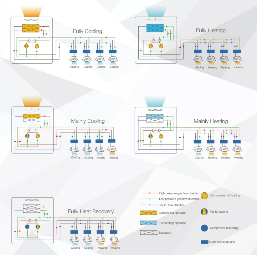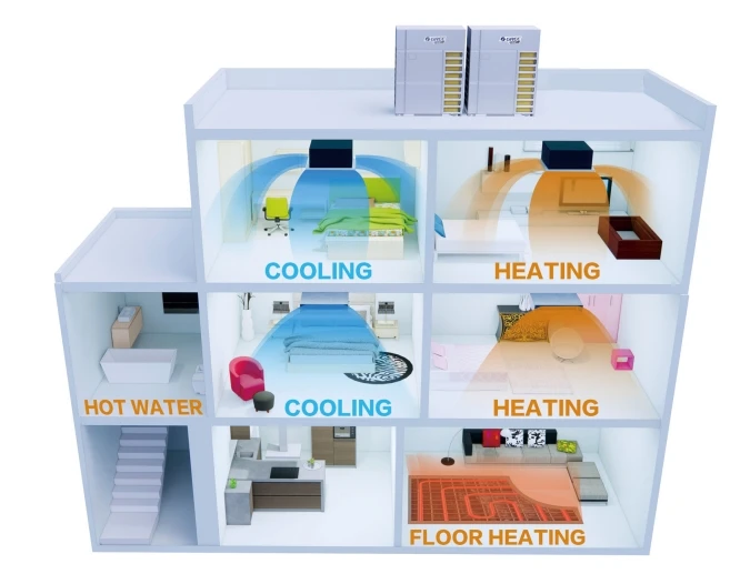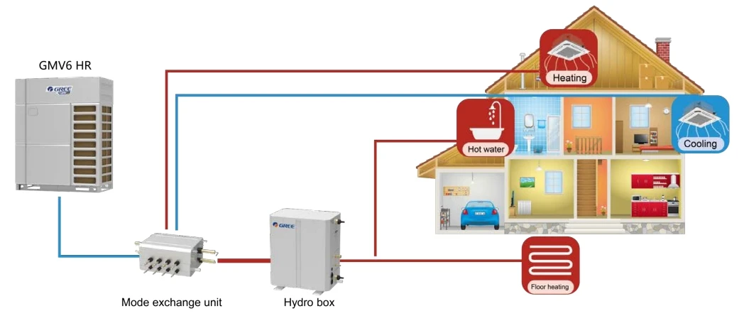This unit can perform air cooling, air heating, and water heating simultaneously, satisfying customers various needs for air conditioning, hot water and floor heating. It is a comprehensive solution for customers.