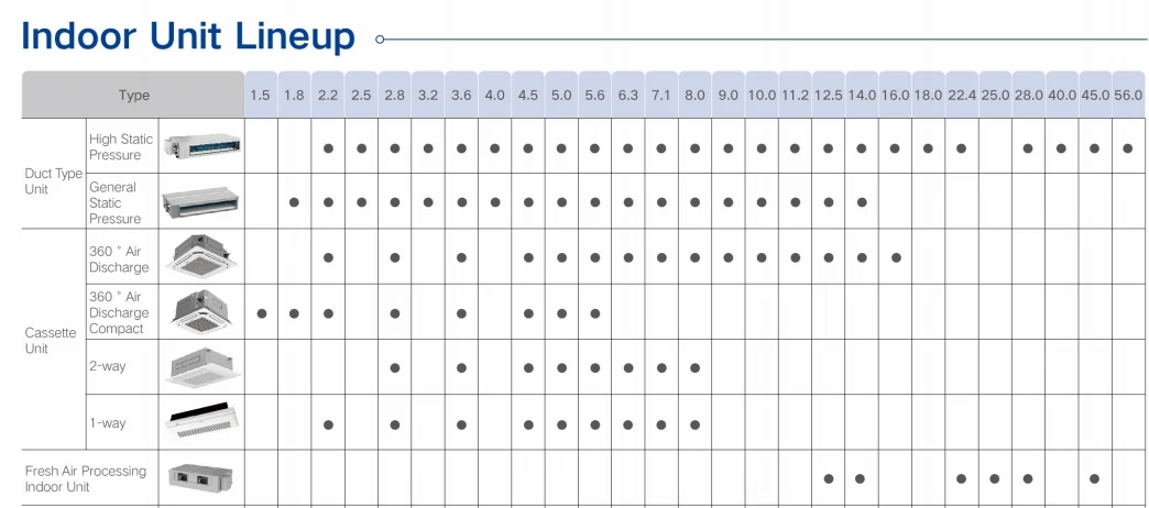 ①Multiple functions in one unit ②SCHE up to 9.0 ③ High-efficiency low-temp enthalpy-adding technology ④ New type heat exchanger design