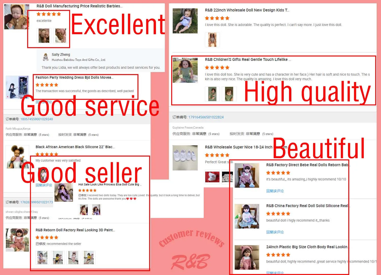 Huizhou R&B DOLL TOY CO.,Limited was established in 2012, located in ZhongKai HuiZhou City which specialized in manufacturing and exporting Reborn dolls, We always adhere to purpose of “quality first, customer first” and keep in to continuous progress and prosperity, we have a modern workshop with advanced equipment, and a toy production line of injection molding, panting assembly and packaging, Our company specializes in the production of reborn dolls, ofreborndolls,selling well in in South America, North America, Europe, the Middle East and other regions. In terms of quality control, we strictly implement each link according to the standards to meet the requirements of customers for product quality from raw material purchase, production control to output testing. The company strives for perfection in products and considerate service to customers, which makes us get more and more recognition and affirmation from customers. With a sincere service attitude, we hope to establish long-term and stable economic cooperation relations with domestic and foreign businesses. Welcome domestic and foreign businessmen to visit and make agreement with cooperation