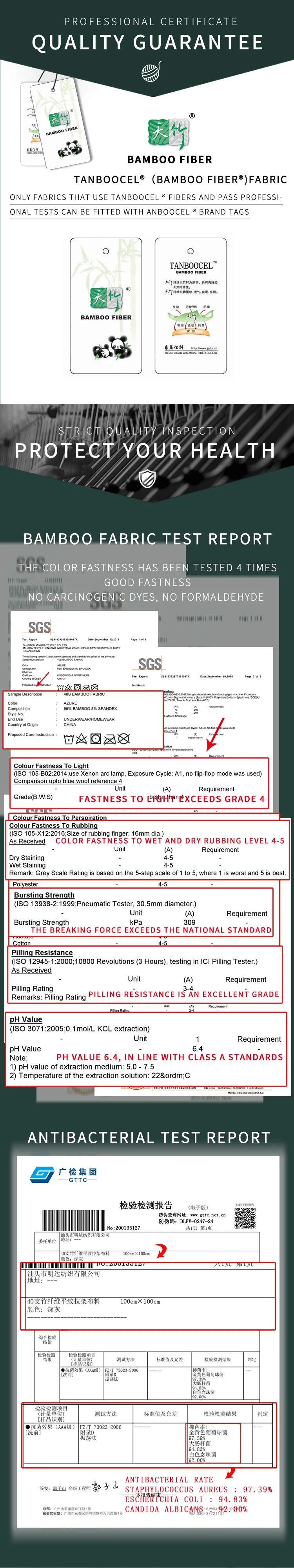 Composition | 92%bamboo 8%spandex | Shrinkage | +/- 5% floating | ||