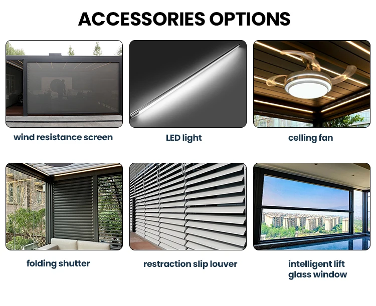 Surface treatment | Anodized/ Powder coated Motorized Pergola Awnings |