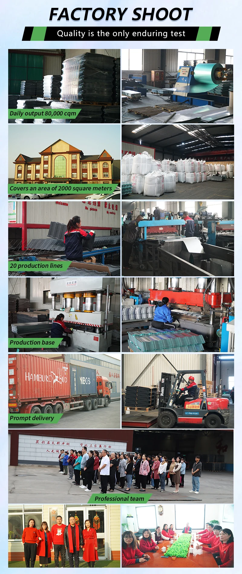 Dezhou Owens New Building Materials Co., Ltd. was established in 2000, and is mainly engaged in the design, research and development, manufacturing, and sales of related materials such as colored stone tiles, resin tiles, colored steel tiles, colored steel composite panels, galvanized steel coils, color coated coils, and exterior wall insulation panels. The company currently has over 200 employees, with a total operating area of over 33000 square meters and a total asset value of over 10 million dollars. Equipped with over 20 advanced production lines, it produces over 6 million square meters of various materials annually, with a total sales value of 25 million dollars. The company's products have passed multiple certifications such as ISO-9001, SGS, Soncap,etc.