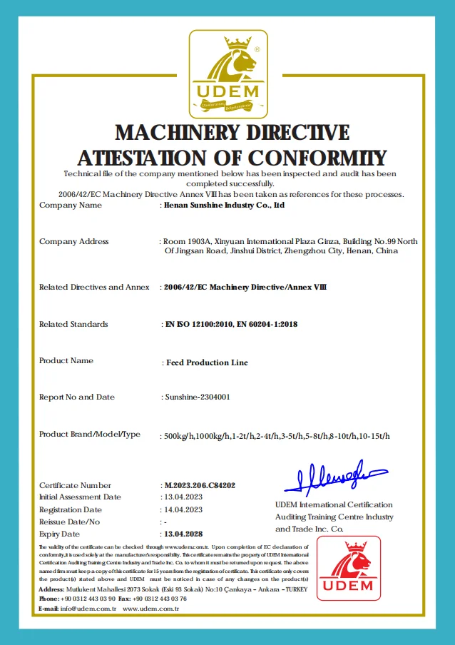 Henan Sunshine Industry Co.,Ltd is a manufacturing enterprise,integrating scientific research,production and marketing.The mainproducts are feed pellet machine and feed pellet production line,fish feed extruder machine .Our company regards the product quality as the life of our exterprise.We have ISO,CE,SGS certificate.Our pellet machines are the recommended products in China machinery industry.,At the same time, we are also introducing international advanced technologies and processes, coupled with a comprehensive and complete modern production operation management system. High-quality requirements,excellence in manufacturing, and long-term and extensive technical experience have continuously improved the quality of our company's products and services. All products and projects can run effectively, stably and reliably,Win a great reputation in domestic and abroad.We have exported more than 100countries like USA,Ecuador,Peru, Germany,Mexico, Canada, Spain, Tanzania,Saudi Arabia,Russia,Singapore, Thailand, India etc.Quality is life,Efficiency is guarantee,service is foundation,Innovate is our motive power,reputation is premise,Brand is target.