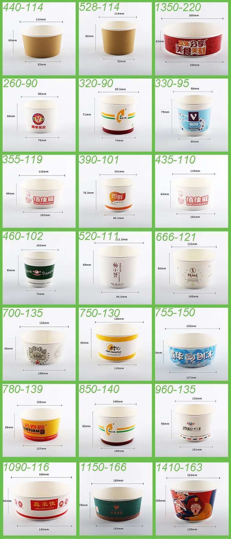 Product name | Specification | Bowl Size(mm) | Package | Carton Size (mm) | Lids | ||||