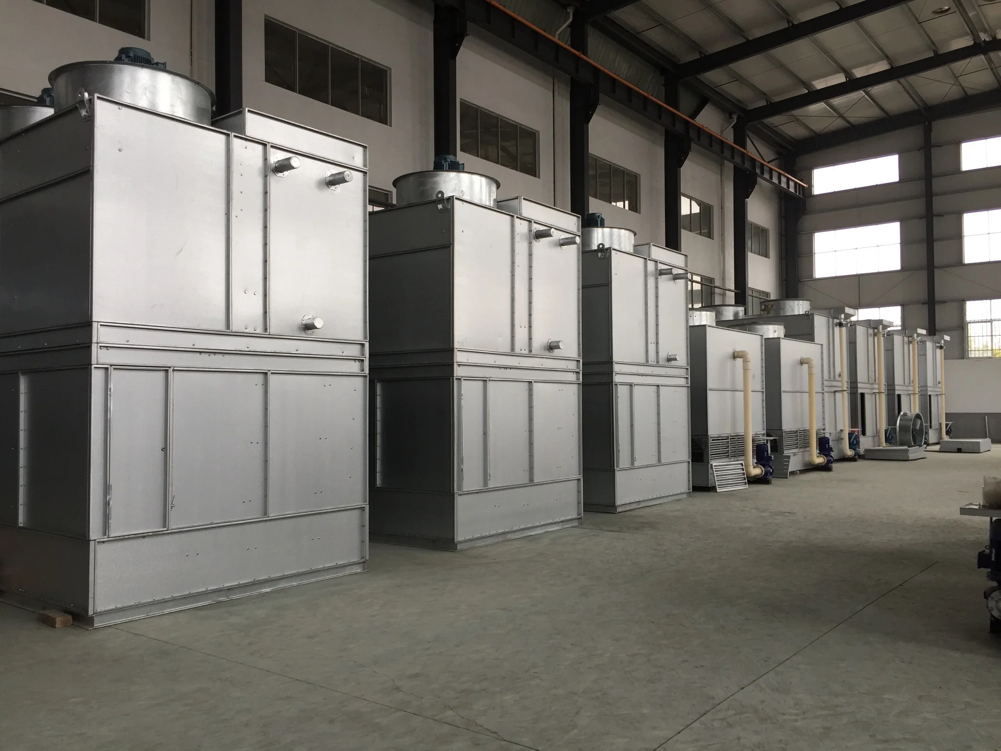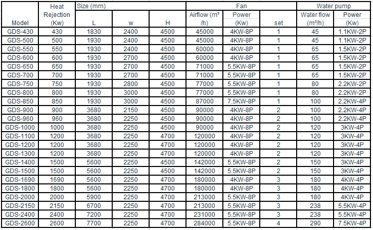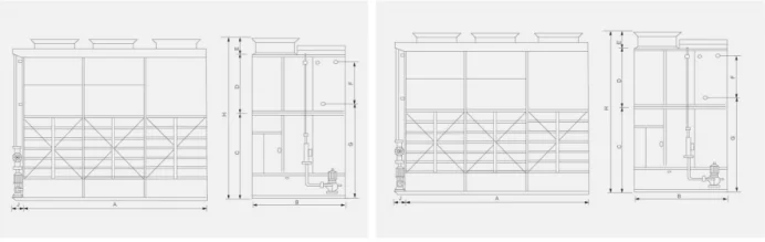 The fresh air travels from the bottom to the top of the condenser, taking away the vapor of the heated spay water. The vapor water will be stopped by the water fender board and flows into the collection basin through pipe coils, and then pumped back into the circulation system. The lost water can be re-supplied with the water level regulator