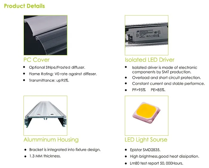 SL-A40X4-36-X | 1166x47*69mm | 36W | 4500~4800lm | 132pcs |