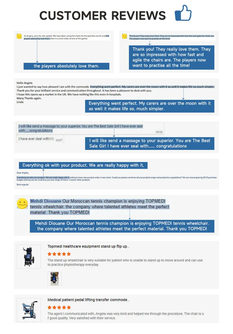 TOPMEDI Co., Ltd. is a professional medical supplier with the ambition to be one of the best and the key rehabilitation equipments supliers in China. Our main products include Electric Wheelchair, Sports Wheelchair, Brain Paralysis Wheelchair, Hospital Bed, Walking Aids,Shower Chair and Commode. Our wheelchair factory is a leading manufacturer of wheelchair and rehabilitation equipments in China. The workshop covers an area of 30,000 squarer meters,with the annual production capacity of 500,000 wheelchairs, 2000,000 walking aids, and 10,000 hospital beds. TOPMEDI products have been well accepted in 80 countries and regions, mainly Australia, America, Europe, Middle East and Asia, covering both high end and middle end market,and enjoy high reputation among customers. TOPMEDI would like to join hands with our partners all around the world for our promising future!