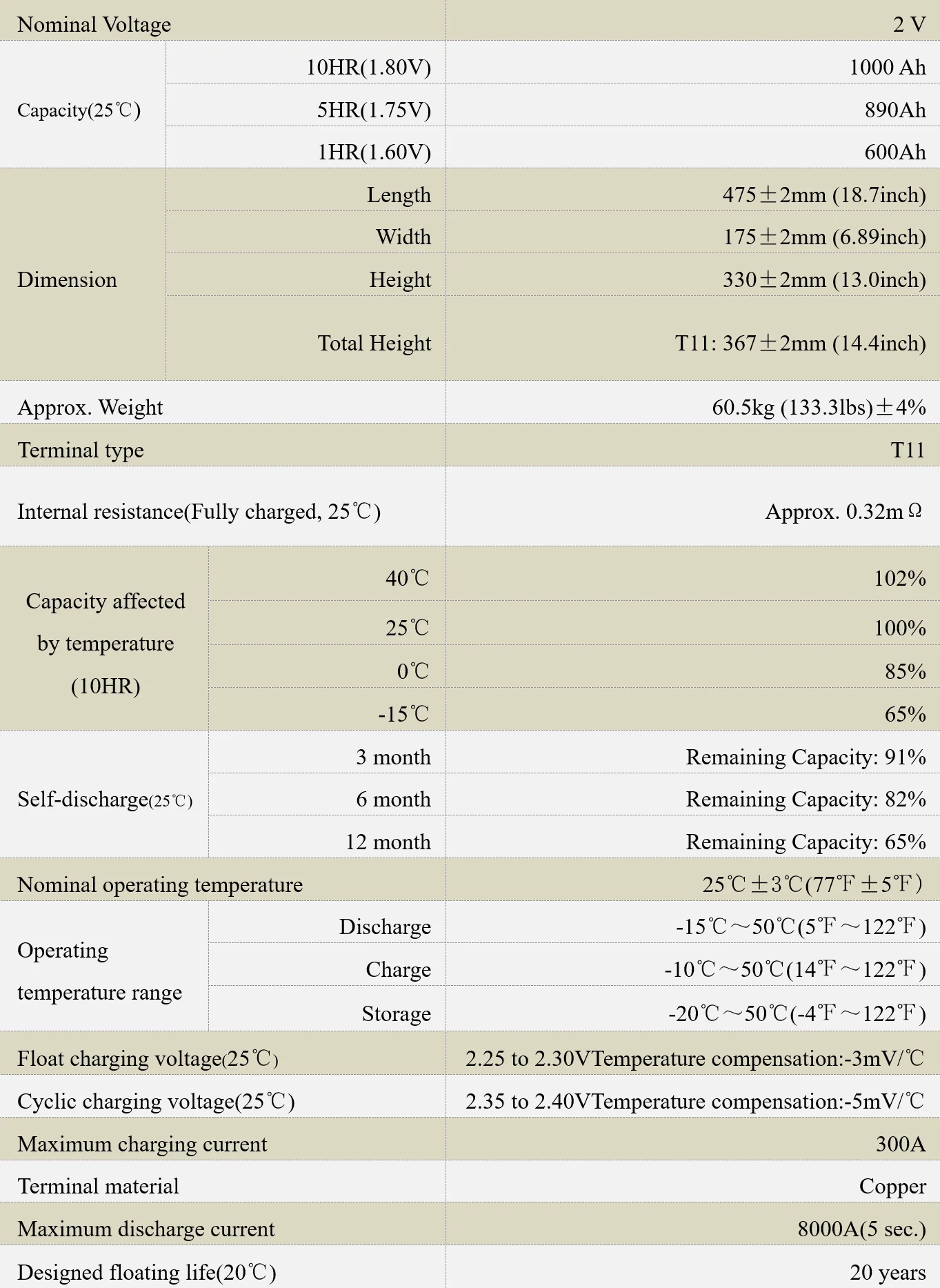 Constant Power Discharge Characteristics(Watt,25℃) | ||||||||||